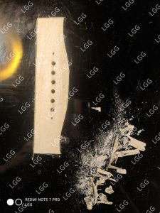 The owner was a young man moving to another city for a new job and wanted bone bridgepins installed in the guitar. But why bone bridgepins?