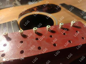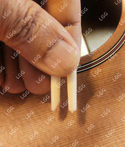 The owner was a young man moving to another city for a new job and wanted bone bridgepins installed in the guitar. But why bone bridgepins?